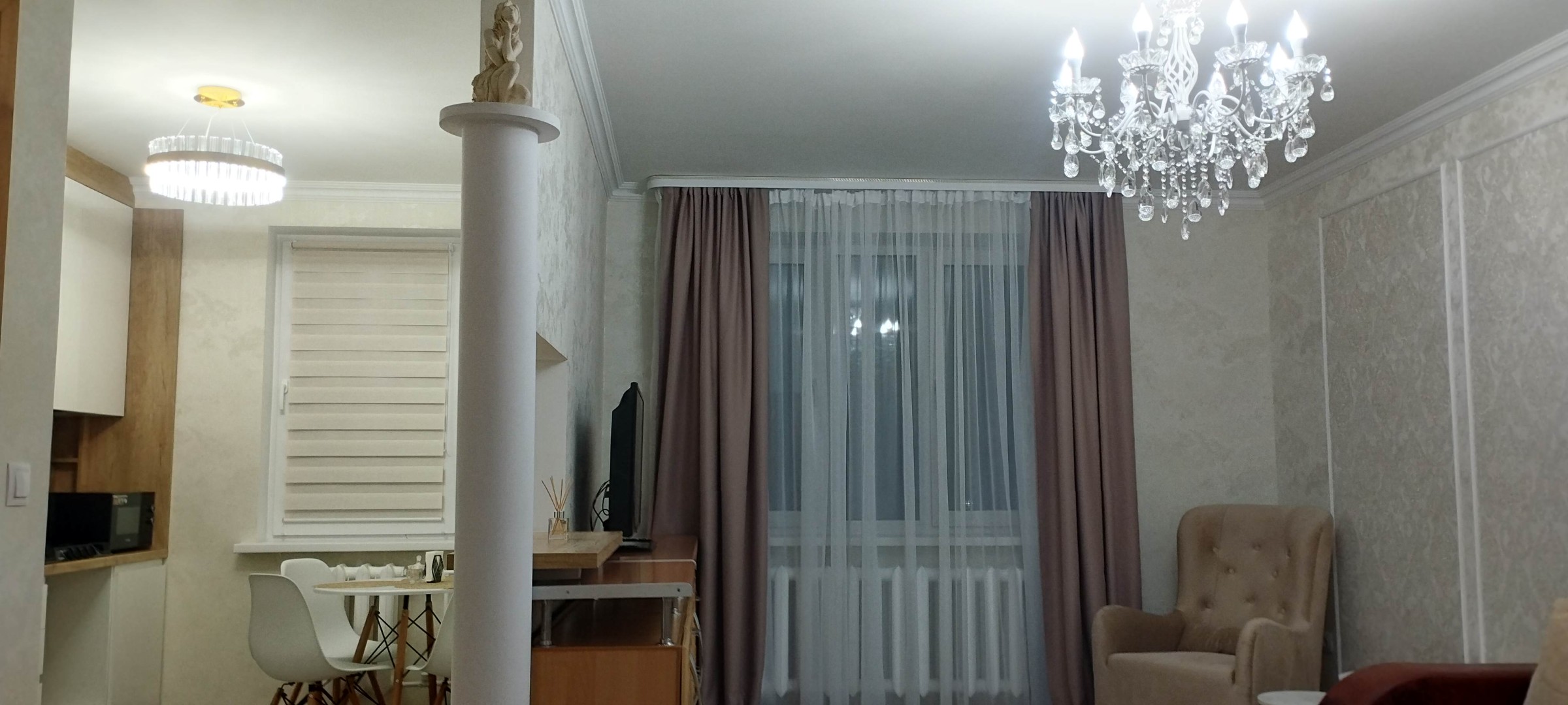 Беспроводной интернет Wi-Fi, Телевизор, Домофон, Полотенца, Кабельное/спутниковое телевидение, Постельное бельё, Мыло, Туалетная бумага, Стиральная машина, Кофе, чай, Шампунь, Застеклённый балкон/лоджия, Ванна, Холодильник, Микроволновая печь, Посуда